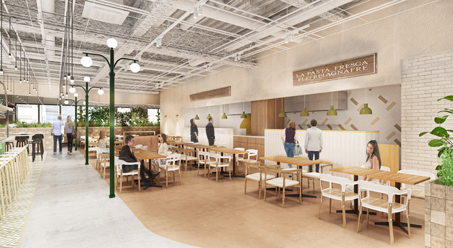 "LA PIAZZETTA," meaning "little square" in Italian, is a casual gathering area with a glass of wine or an Italian cocktail in hand. "LA PASTA e LA PIZZA" combines a restaurant and pizzeria, offering Eataly standard dishes from Spaghetti Eataly to Pizza Margherita.