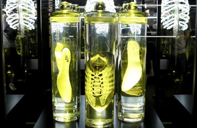 Nike's running shoe, the Nike Air Max 95, was released in 1995 and is celebrating its 20th anniversary this year. To commemorate the anniversary, a reissue of the original model, the Nike Air Max 95 OG (15,000 yen), was released last month. From August 6th to 16th, an exhibition space called "STUDIO 95" (6-7-16 Jingumae, Shibuya-ku, Tokyo) will open in Harajuku, Tokyo, to look back on the history of the Nike Air Max 95. The Nike Air Max 95 continues to be beloved as a "legendary sneaker." Designer Sergio Lozano consulted a book on human anatomy and drew inspiration from the structure of the human body to create the design, with the eyelets representing the ribs, the mesh representing the skin, and the air-injected sole representing the spine and vertebrae. The "STUDIO 95" exhibition features design sketches and anatomical models that offer a glimpse into the production process, as well as a rib-shaped neon light and an "AIR MAX 95" disassembled into its individual parts preserved in formaldehyde. Visitors can feel as if they're peering into Sergio Lozano's mind. Additionally, an archive of the "AIR MAX" series soles is on display, demonstrating just how revolutionary the "AIR MAX 95" was, the first shoe to feature "visible Air" in the forefoot. Additionally, 66 pairs of "AIR MAX 95" pairs, including past collaborations and limited edition models, are on display in glass specimen containers, telling the story of the series' history. The diverse lineup includes the original model released in 1995, a special edition model by the popular sneaker shop "atmos," designs inspired by the 2012 London Olympics and traditional Japanese festivals, a striking yellow-and-brown gradient model nicknamed "curry," and experimental designs incorporating Nike's latest technology.