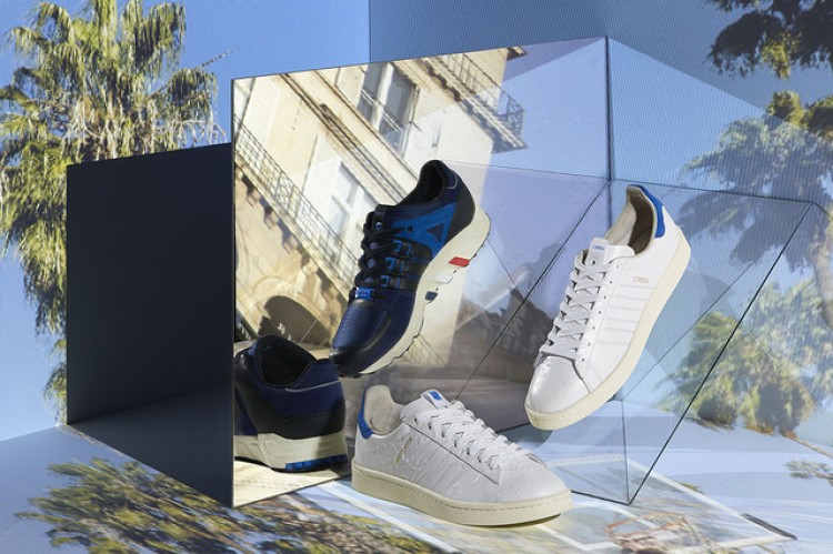 For the first project, colette has teamed up with UNDEFEATED to create two shoes, the "Campus 80" (17,000 yen) and the "EQT Support" (19,500 yen), inspired by the concept of "playing with opposites." The "Campus 80" features a white premium leather upper with an off-white rubber sole and blue embroidery and heel. The "EQT Support" is a darker, nighttime version with an off-white sole and a dark navy and deep blue upper. Both models feature contrasting colorways, but share a clear and consistent theme.