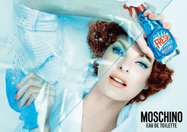 This unique fragrance in the form of a household cleaner is sold in an elegant box made from high-quality paper. The advertising campaign features Linda Evangelista as model. The photographer is Steven Meisel and the art director is Jeremy Scott.